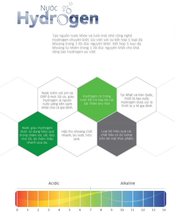<div>Tạo nguồn nước khỏe và tươi mát nhờ công nghệ Hydrogen chuyên biệt. Ưu việt với sự kết hợp 5 loại đá khoáng trong 1 lõi đúc nguyên khối cho khả tăng tạo Hydrogen ưu việt</div>